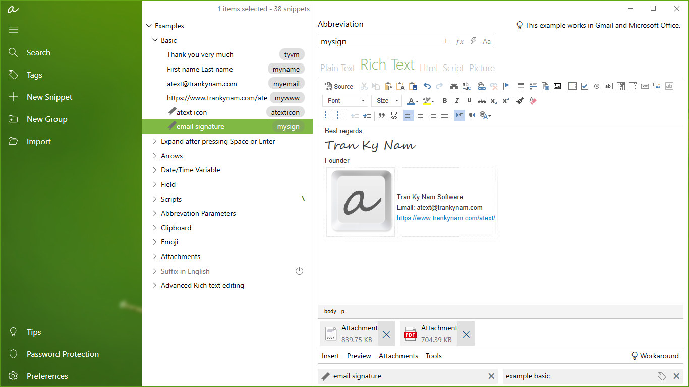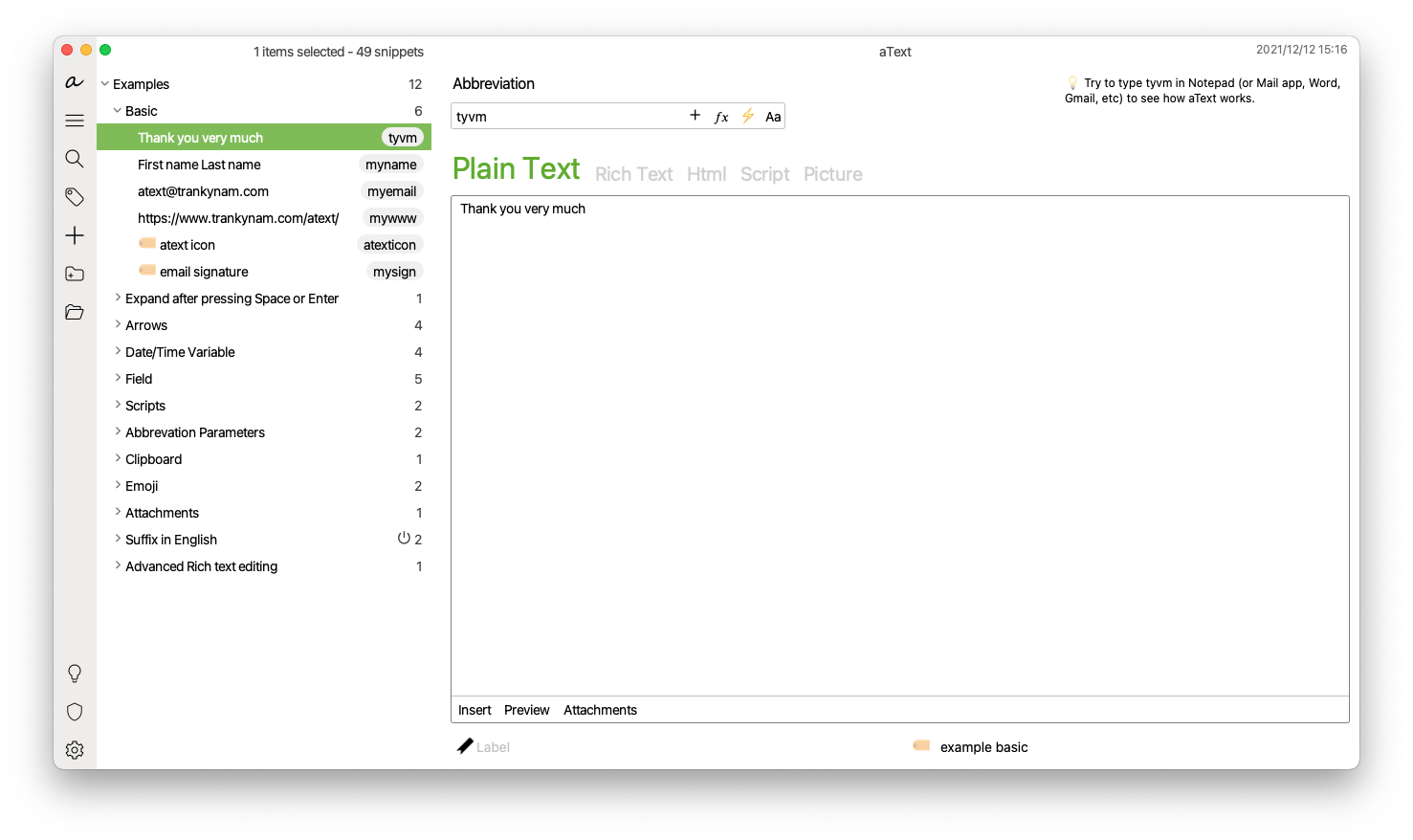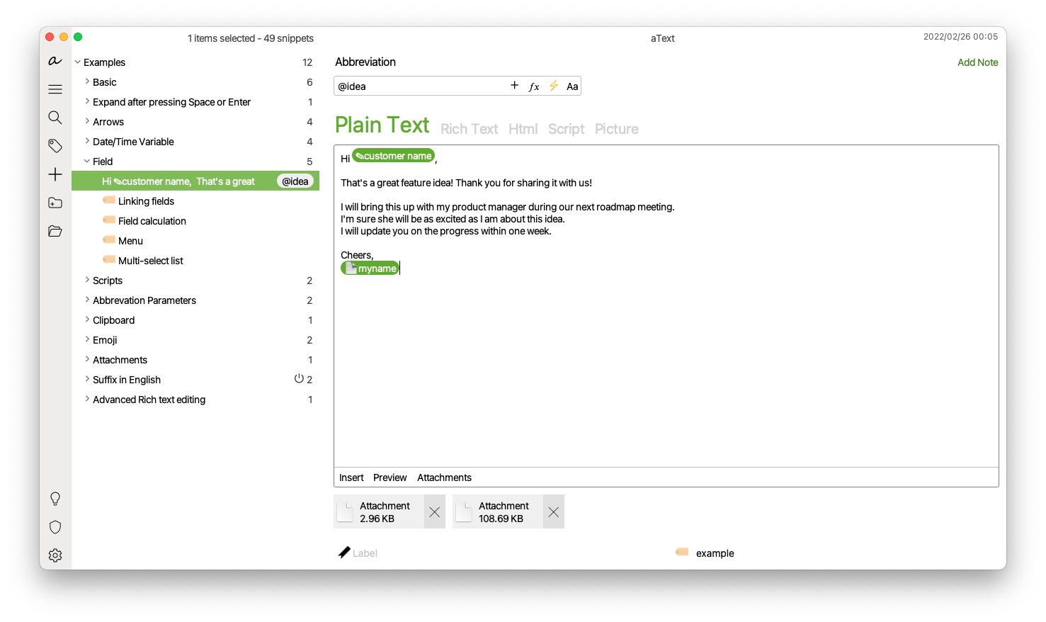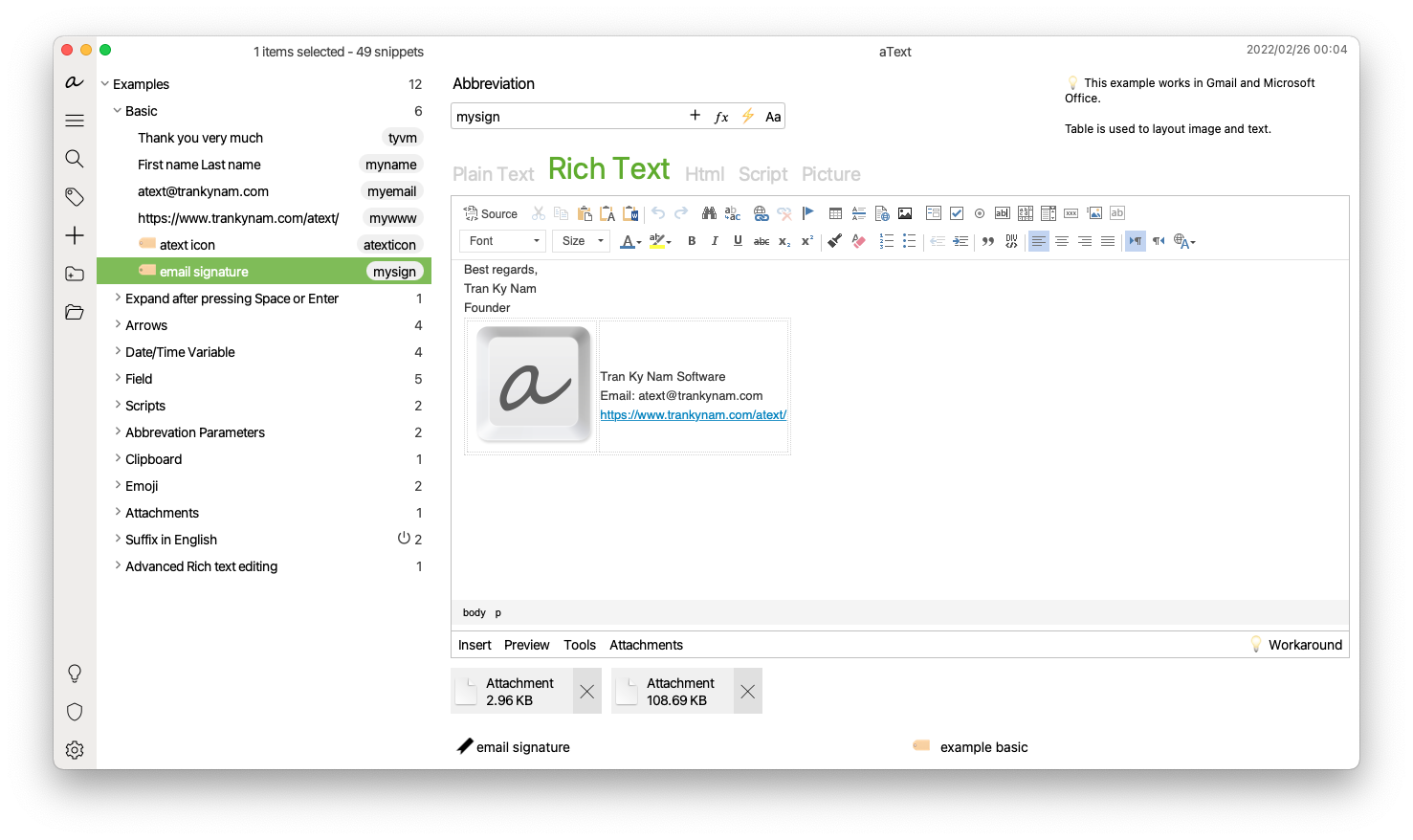 aText accelerates your typing in any application by replacing abbreviations with frequently used phrases you define.